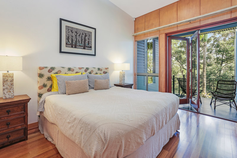 Set across 2 very spacious levels the master suite and living area are on the upper entrance level, with 2 additional guest rooms on the lower level. All of the bedrooms are very spacious, have access to their own bathroom and offer plenty of opportunity to enjoy the rainforest and ocean views.
